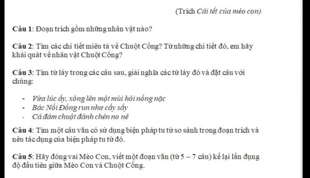 Lũ chuột bò lên chạn, leo lên bác Nồi Đồng. Năm sáu thằng xúm lại húc mõm vào, cố mãi mới lật được cái vung nồi ra. “Ha ha! Cơm nguội! Lại cỏ một bát cá kho! Cá rô kho khế, vừa dừ [3] vừa thơm.