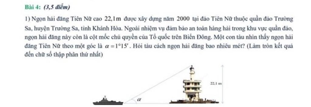 Khoảng cách từ tàu đến ngọn hải đăng là :
