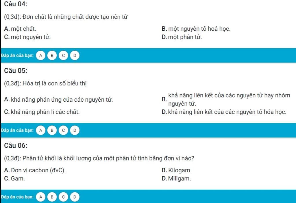 (0,3đ): Đơn chất là những chất được tạo nên từ