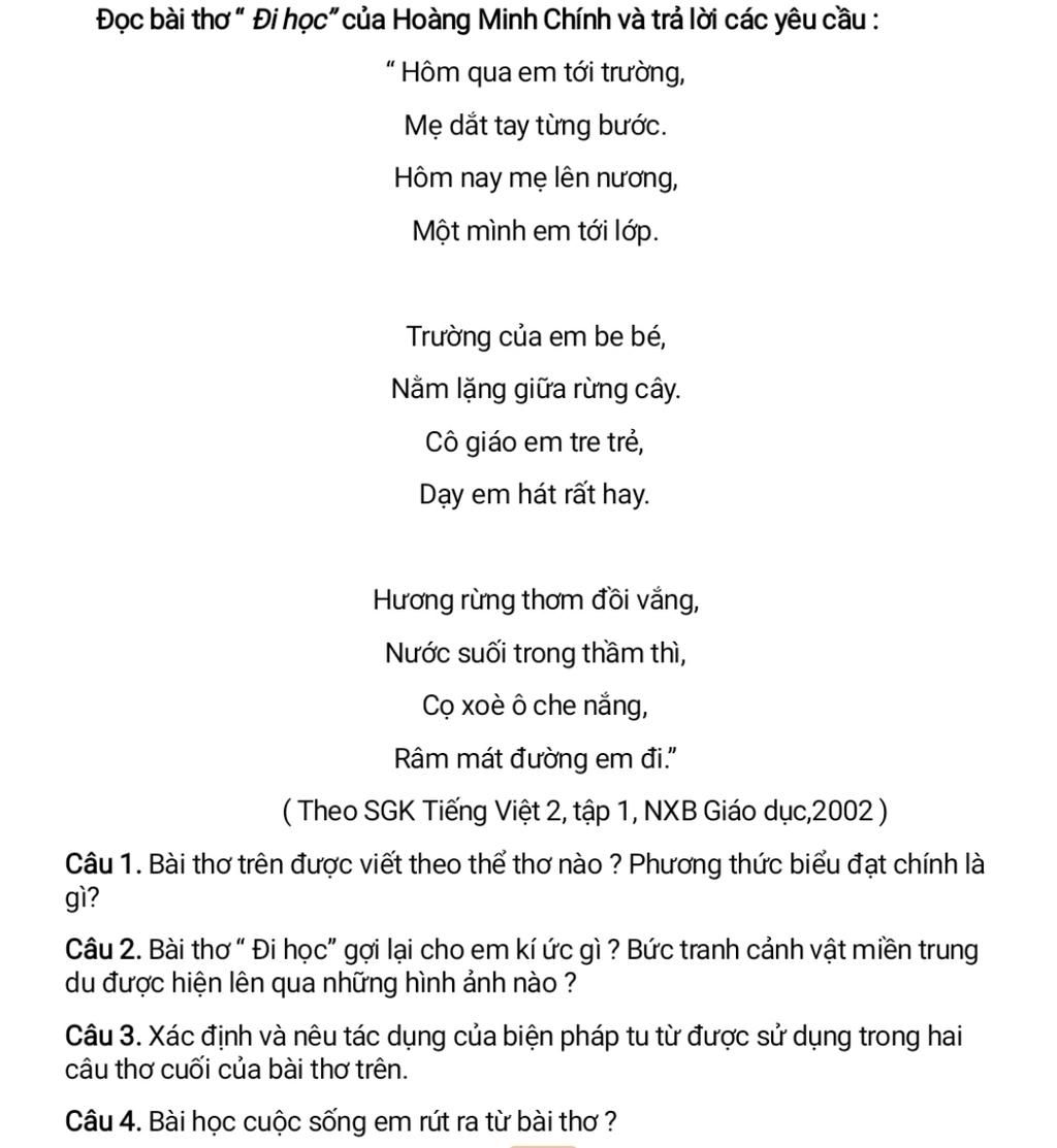 4/ em rút ra đc bài học cần có tính siêng năng như cô bé trong bài thơ,ko ngại đường xa mà còn rất thik đến trường để học tập.