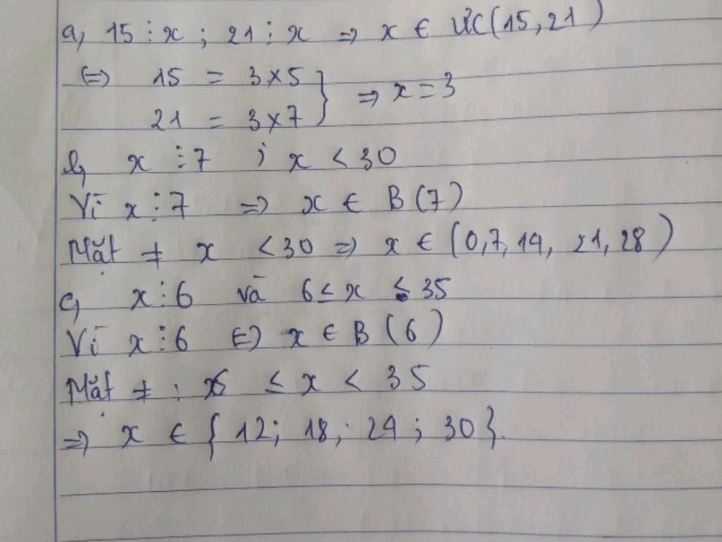b) x 7 và x< 30