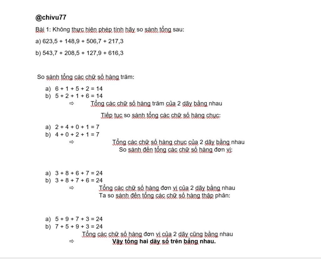 Bài 1: không thực hiện phép tính hãy so sánh tổng sau: