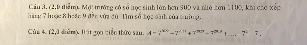 Câu 3. (2,0 điểm). Một trường có số học sinh lớn hơn 900 và nhỏ hơn 1100, khi cho xếp
