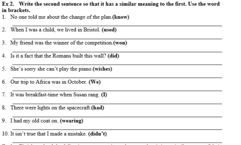 Ex 2. Write the second sentence so that it has a similar meaning to the first. Use the word