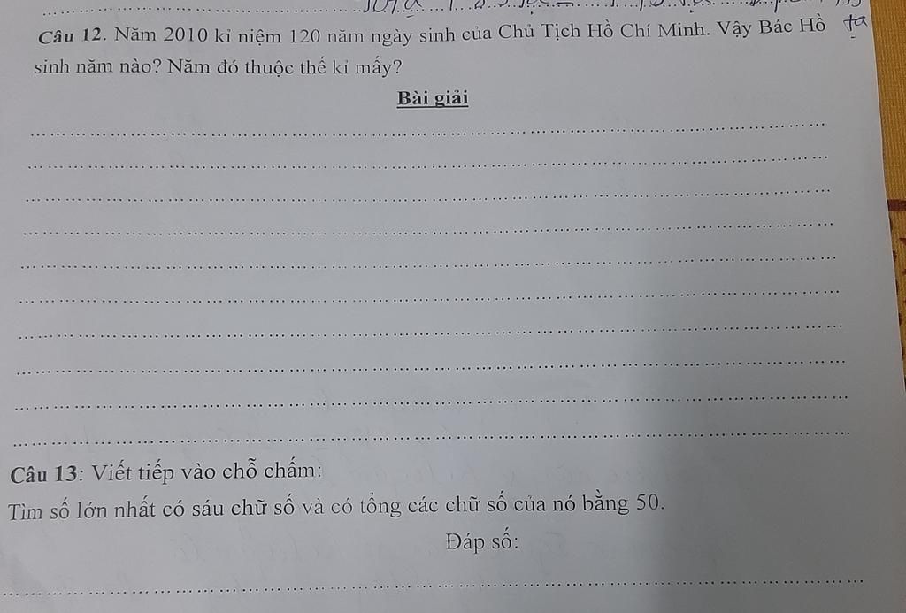 Vậy Bác Hồ sinh năm `1890;` Thuộc thế kỉ thứ XIX