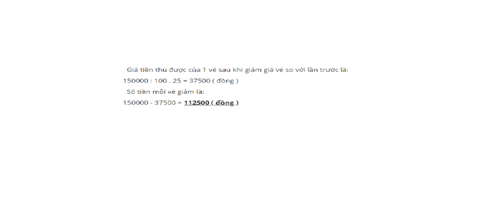 Do số vé bán được tăng 50% so với lần trước nên số vé bán được bằng 1,5 so với lần trước, tổng số tiền thu được cũng tăng 25%so với lần trước nên tổng số tiền thu được bằng 1,25 so với lần trước,