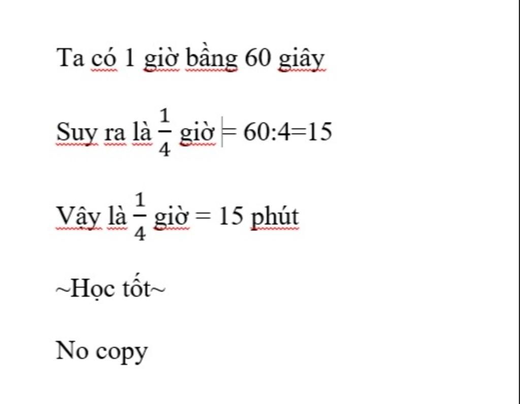 Vậy `1/4` giờ bằng `15` phút