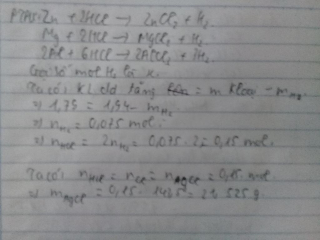 Ta có: khối lượng dd tăng=m kim loại-mH2