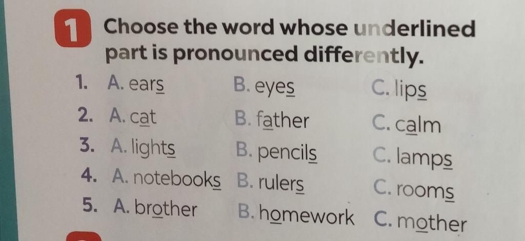 1, C ( câu C phát âm là /s/, còn A và B phát âm là /z/)