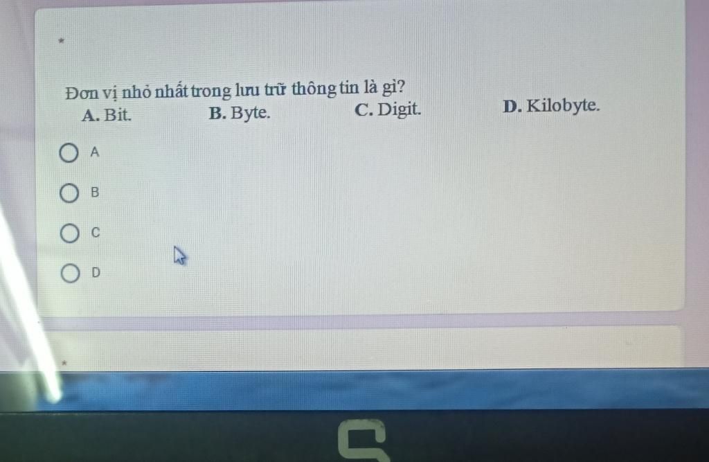Ta thấy, "bit" là đơn vị nhỏ nhất trong bảng trên nên bit sẽ là đơn vị nhỏ nhất trong bảng đơn vị đo lường thông tin của máy tính.