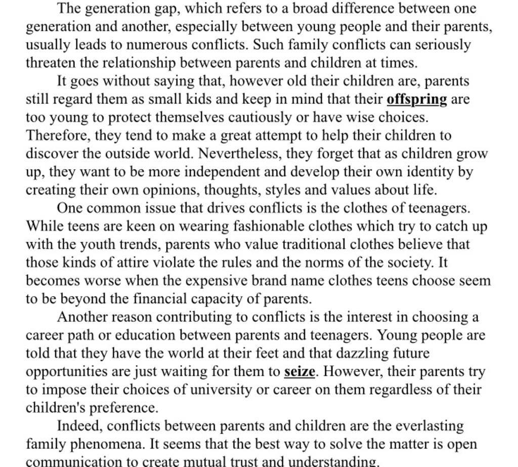 Thực vậy, xung đột giữa cha mẹ và con cái là điều hiện tượng gia đình muôn thuở. Có vẻ như cách tốt nhất để giải quyết vấn đề là mở ra sự giao tiếp để tạo sự tin tưởng và hiểu biết lẫn nhau.