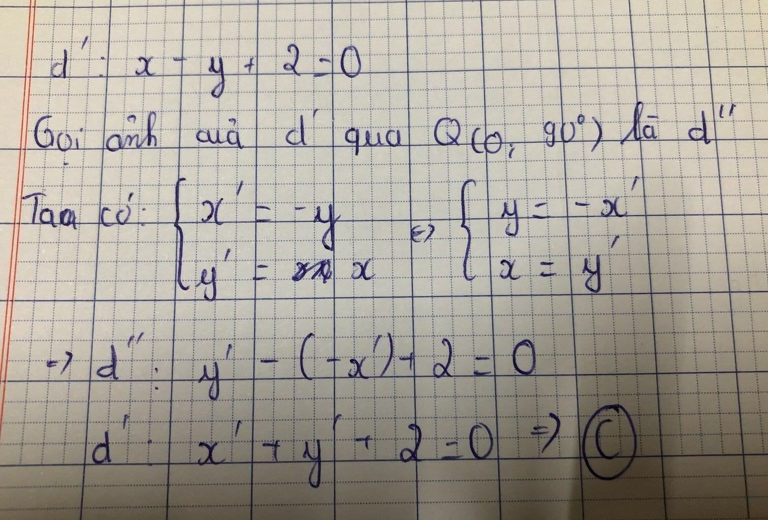 Qua phép quay tâm $O$ góc quay $90^\circ$ biến $A$ thành $A' \in (d)$ có toạ độ:
