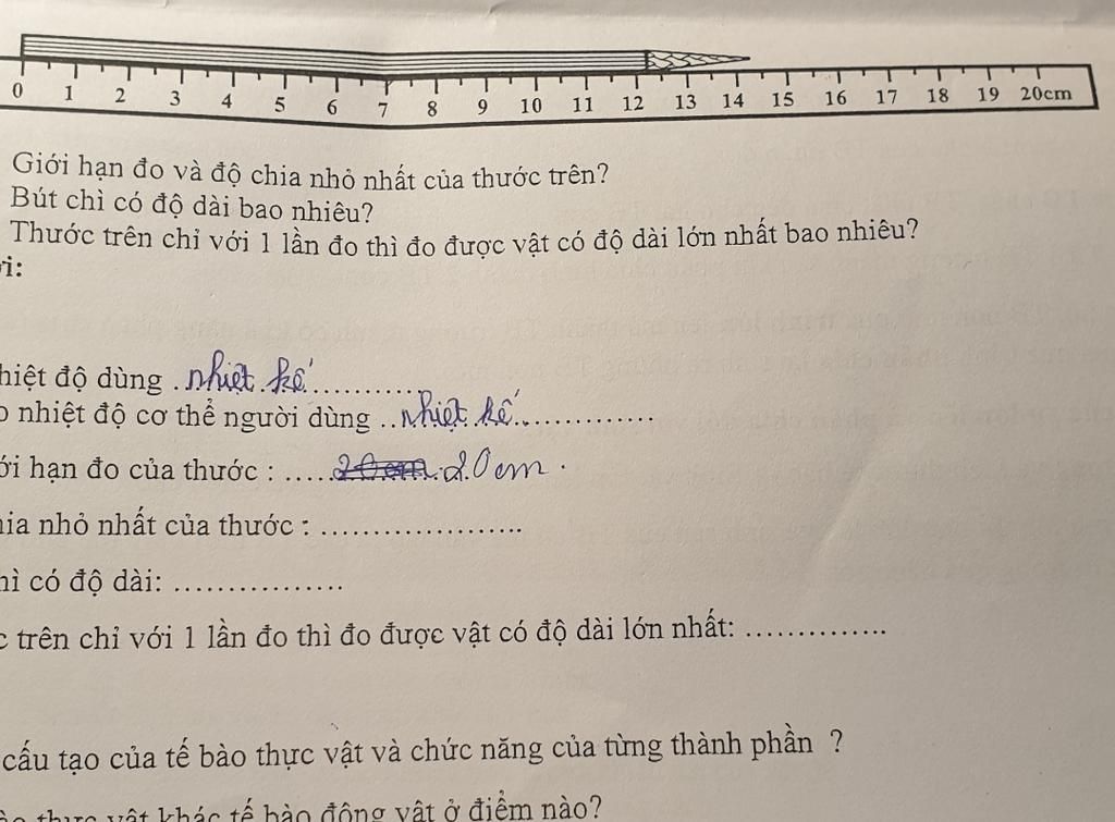 Giới hạn đo của thước kẻ là 20cm