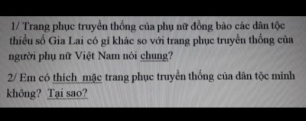 Câu 1: Trang phục truyền thống của phụ nữ Gia Lai: