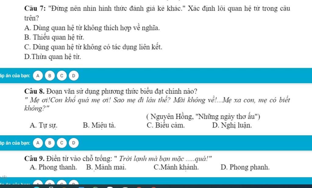 => Vì con khổ quá là nói về cảm xúc nên ta chọn C.