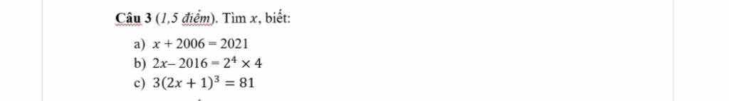 $\text{a)x + 2006 = 2021}$