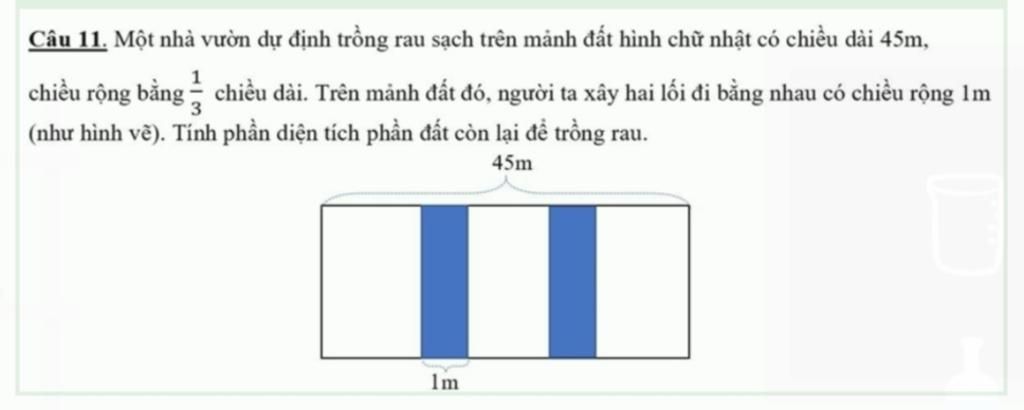 Lý luận: Chiều rộng mảnh đất bằng chiều dài lối đi. Vậy chiều rộng mảnh đất bằng 15m