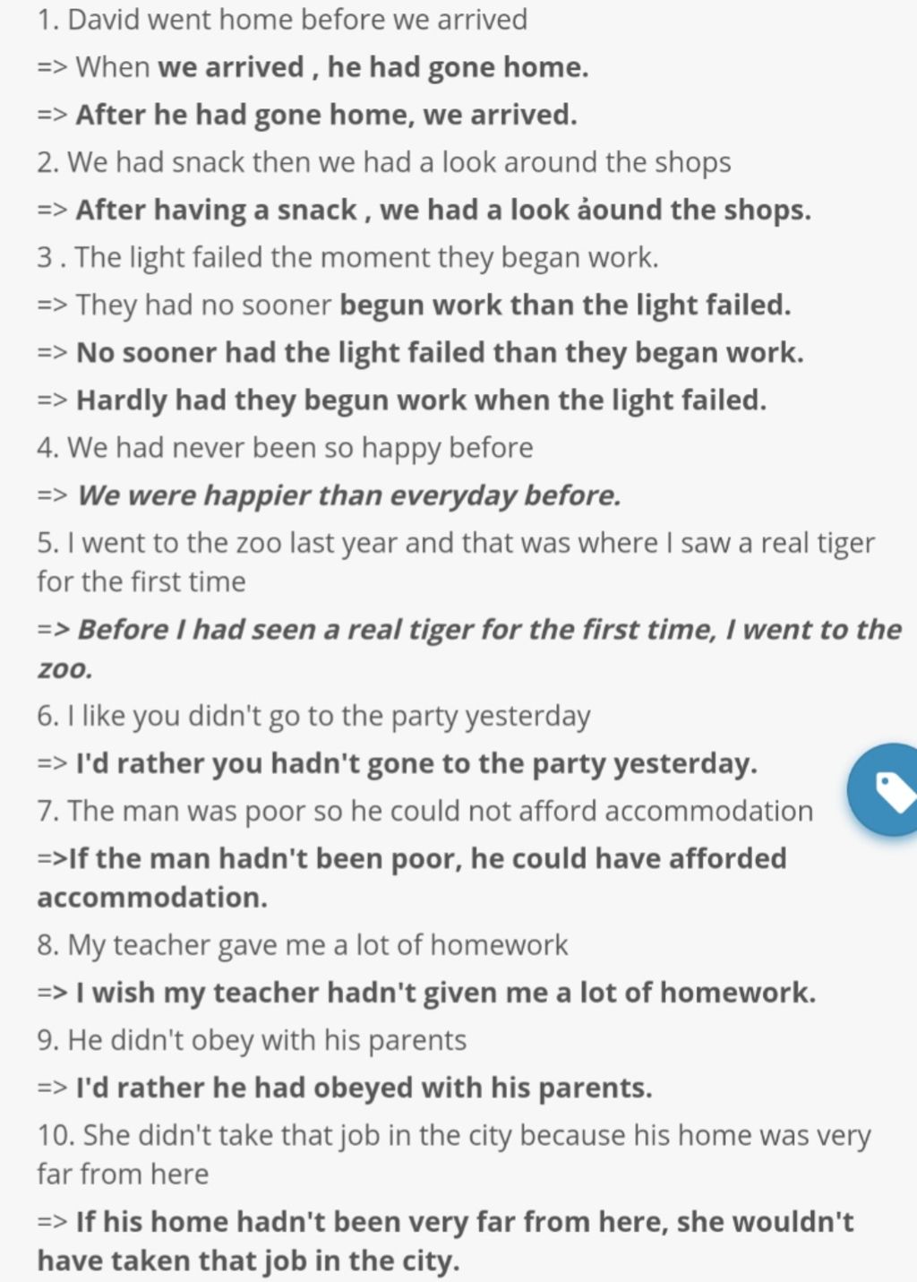 8. I wish my teacher hadn't given me a lot of homework
