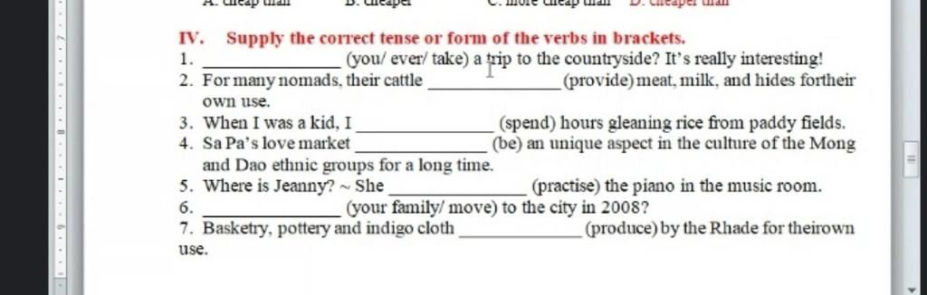 4. Sa Pa's love market is (be) an unique aspect in the culture of the Mong and Dao ethnic groups for a long time