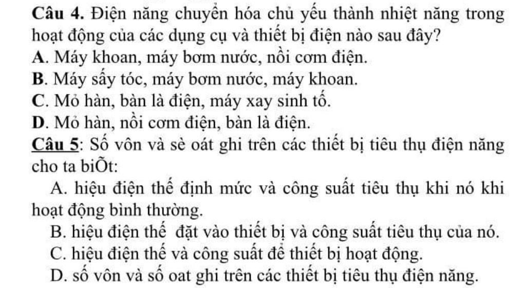 Điện năng chuyển hóa chủ yếu thành nhiệt năng trong hoạt động của các dụng cụ và thiết bị điện: