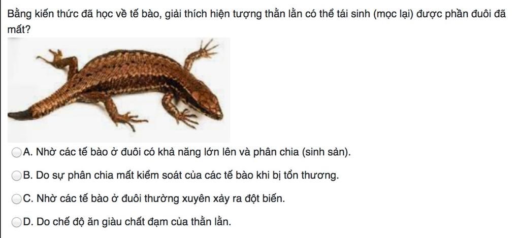 Bằng kiến thức đã học về tế bào, giải thích hiện tượng thằn lằn có thể tái sinh (mọc lại) được phần đuôi đã