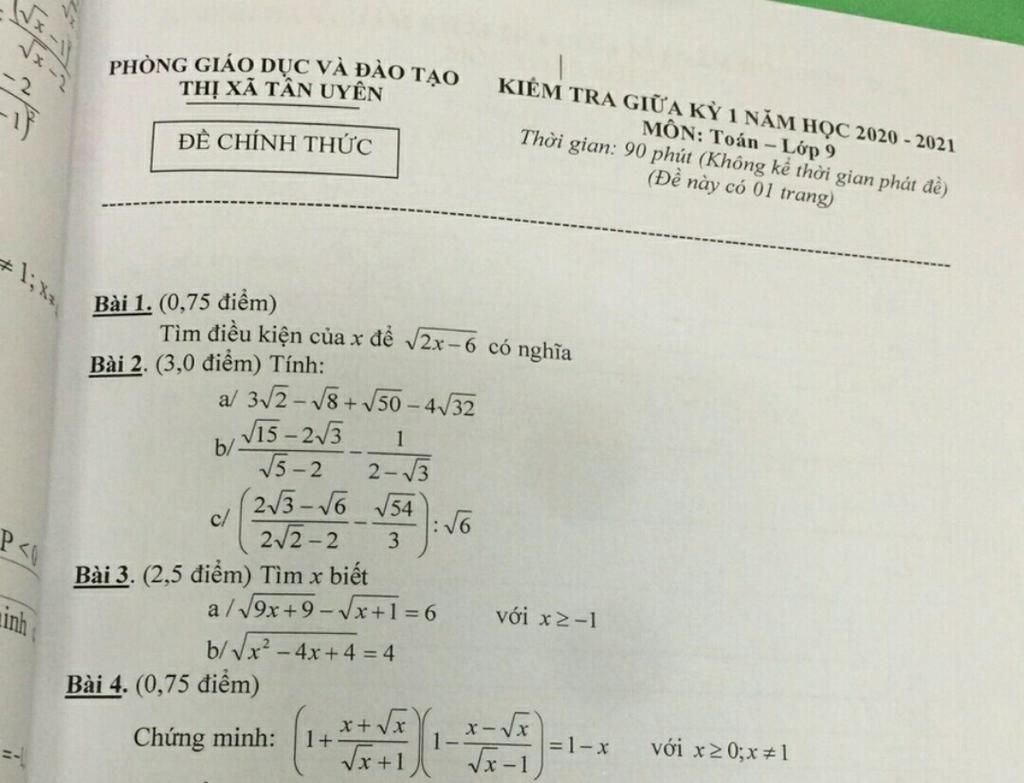 ĐÈ CHÍNH THỨC