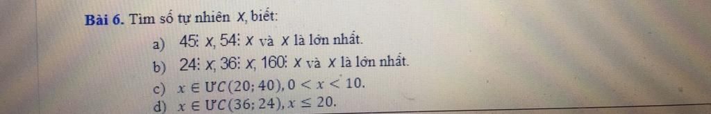 =>x thuộc ƯC(24,36,160), x lớn nhất