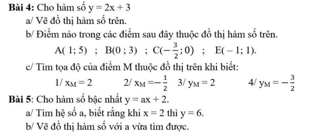 Bài 5: Cho hàm số bậc nhất y = ax + 2 ...