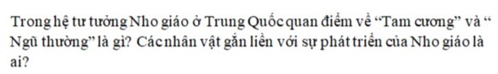 - Quan điểm của Nho giáo về quan hệ "Tam cương" là quan hệ giữa vua – tôi, chồng - vợ, cha - con.