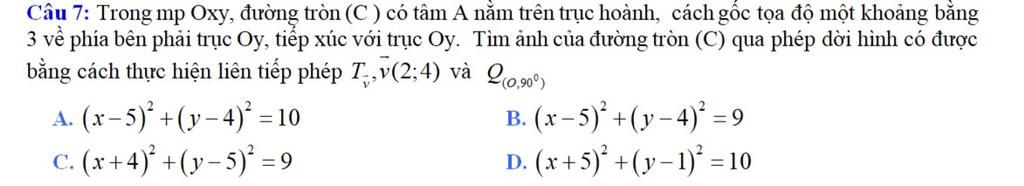 3 về phía bên phải trục Oy, tiếp xúc với trục Oy. Tìm ảnh của đường tròn (C) qua phép dời hình có được