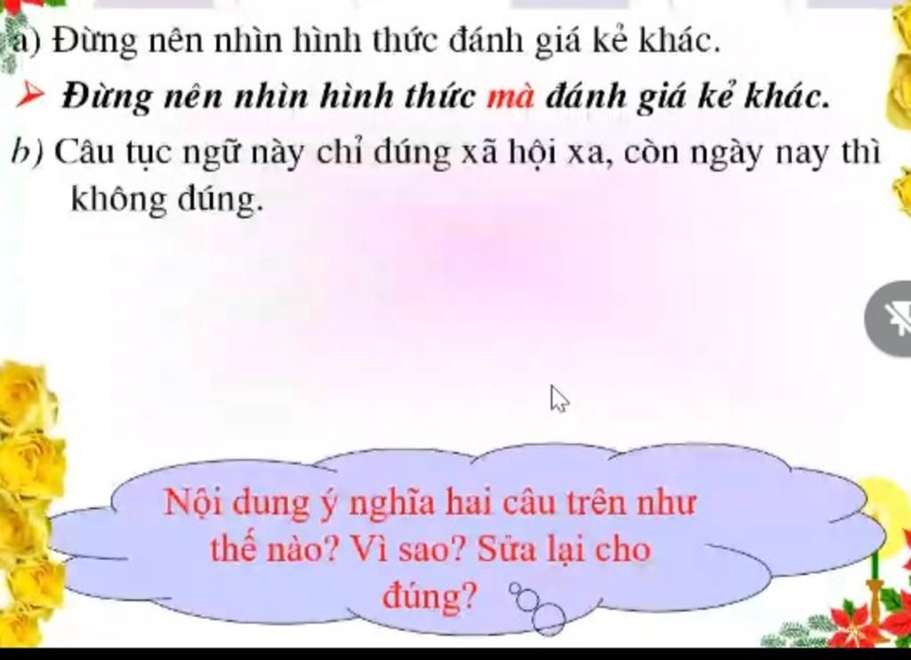 a) Đừng nên nhìn hình thức đánh giá kẻ khác.