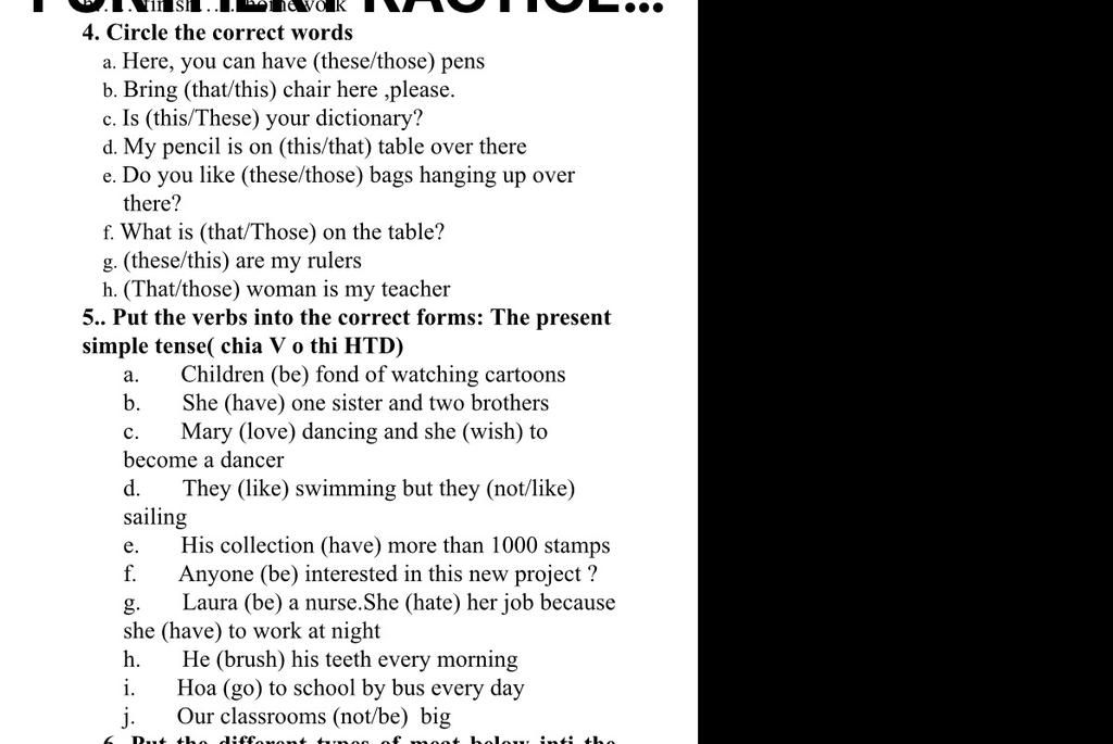 GT. ở bài 4 thì this/ these là ở cái ở gần nghĩa là cái này, that/those là ở xa nghĩa là cái đó