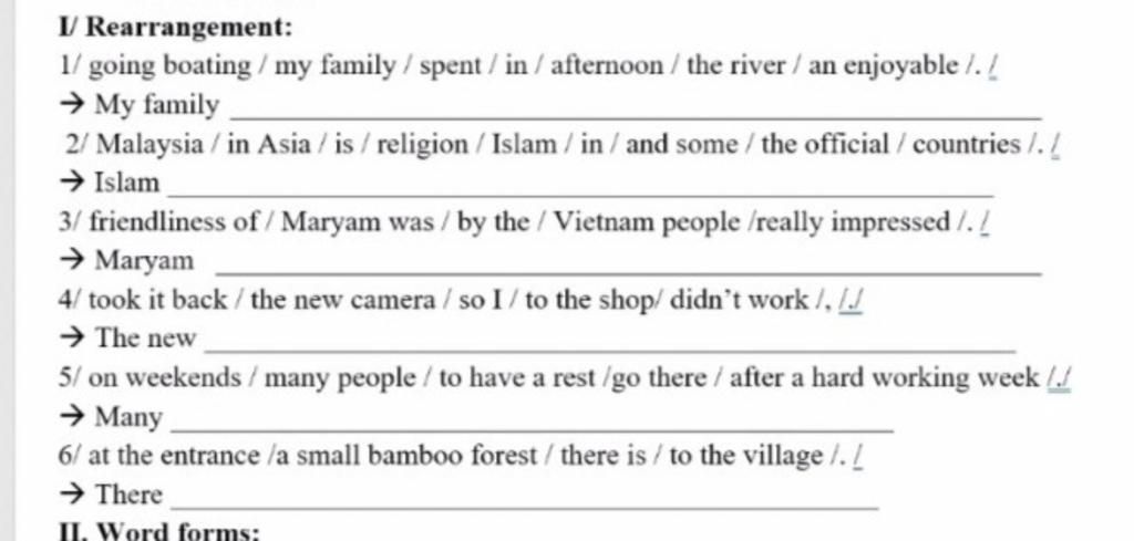 3/ friendliness of / Maryam was / by the / Vietnam people /really impressed /.