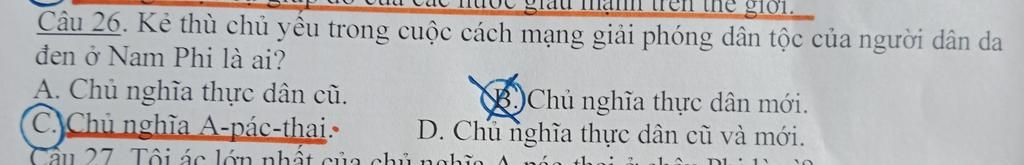 Câu 26. Kẻ thù chủ yêu trong cuộc cách mạng giải phóng dân tộc của người dân da