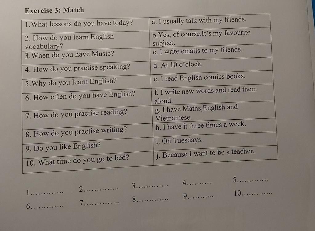 3.i(Vì người ta hỏi thời gian học âm nhạc nên ta chọn i)