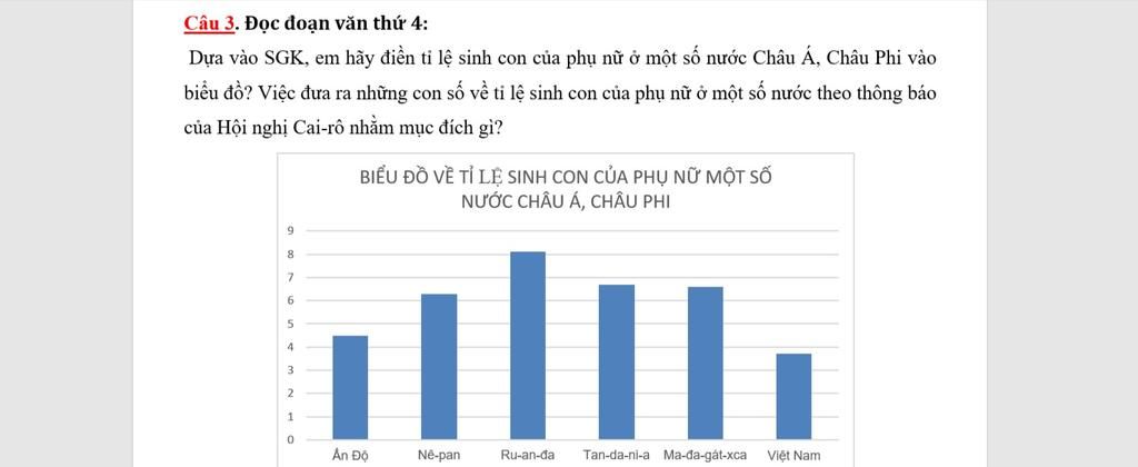 3.A - Việc đưa ra những con số về tỷ lệ sinh con của phụ nữ ở một số nước theo thông báo của Hội nghị Cairo với mục đích trước tiên là chứng minh rằng phụ nữ có khả năng sinh được rất nhiều con.