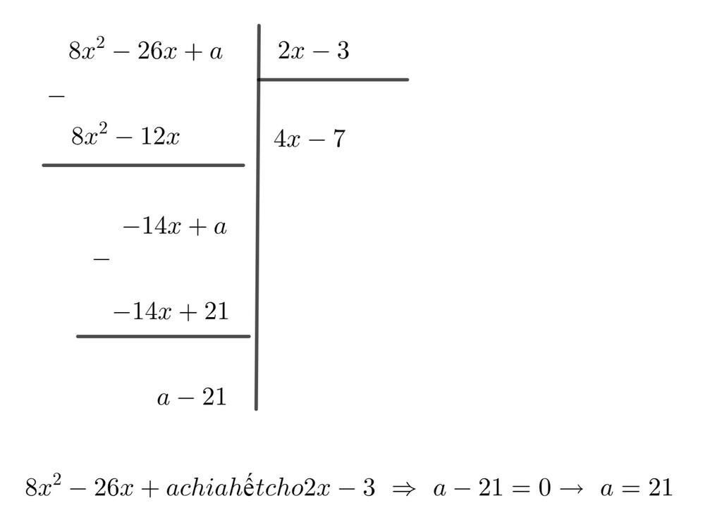 Để `8x^2-26x+a vdots 2x-3` thì `a-21=0`