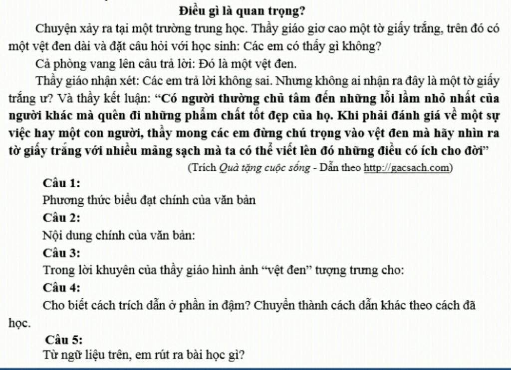 Câu 3: Trong lời khuyên của thầy giáo hình ảnh "vết đen" tượng trưng cho những sai lầm, thiếu sót, hạn chế… mà mỗi chúng ta đều có thể mắc phải.