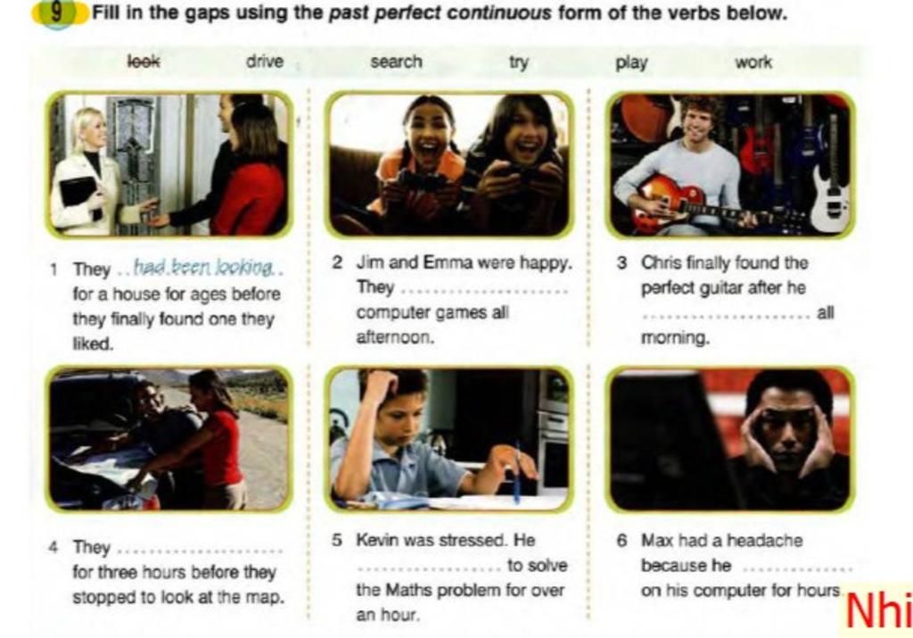 Điền vào chỗ trống ở dạng quá khứ hoàn thành tiếp diễn của các động từ dưới đây: