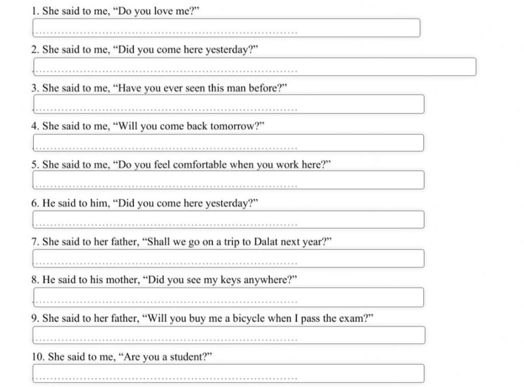 Note : Câu tường thuật các bạn nhớ lùi thì, ngôi và trạng ngữ chỉ thời gian - nơi chốn.