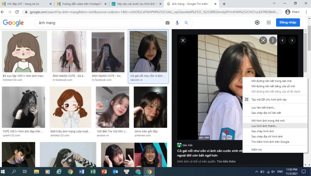 -> Bước 1: Ấn vào bức ảnh mình muốn lưu trên trang web ấy.