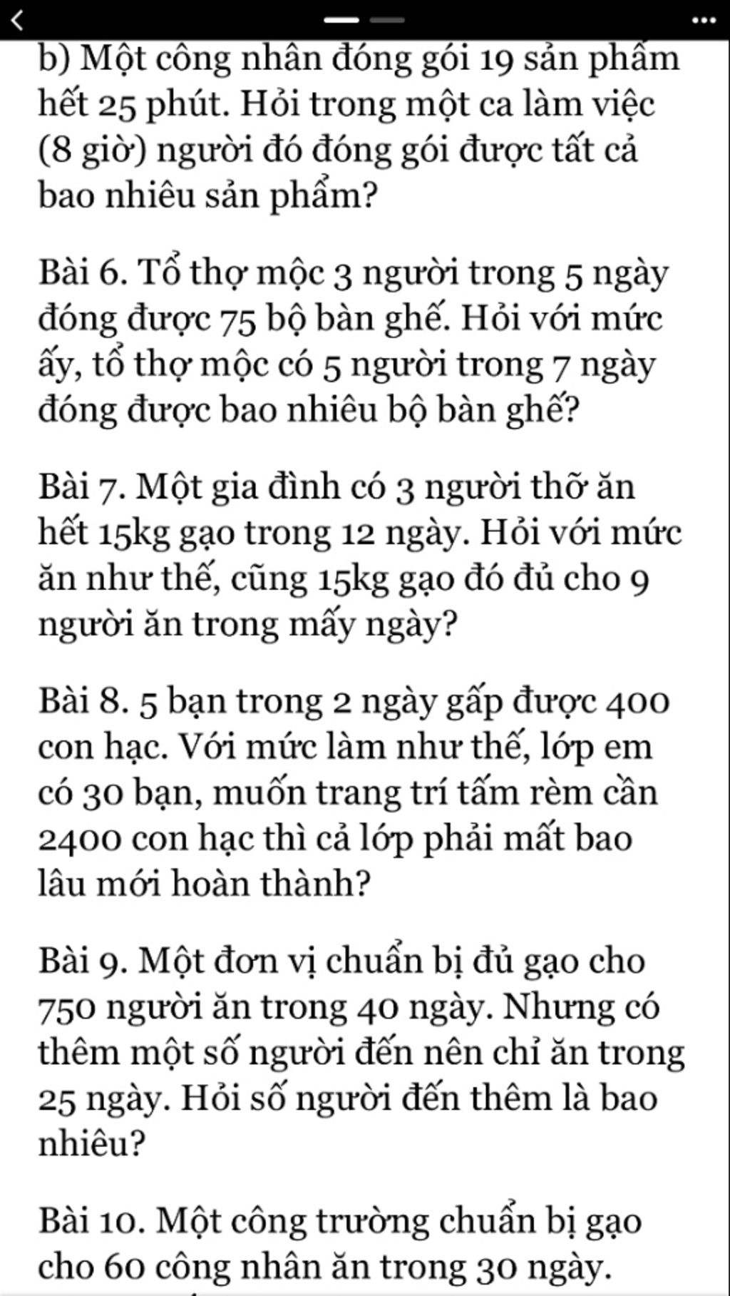 Bài 6. Tổ thợ mộc 3 người trong 5 ngày