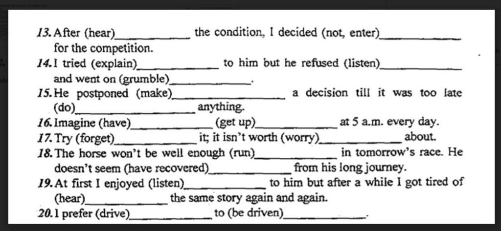 13 After (hear) hearing he conditions I deciede (not enter) not to enter for the competition