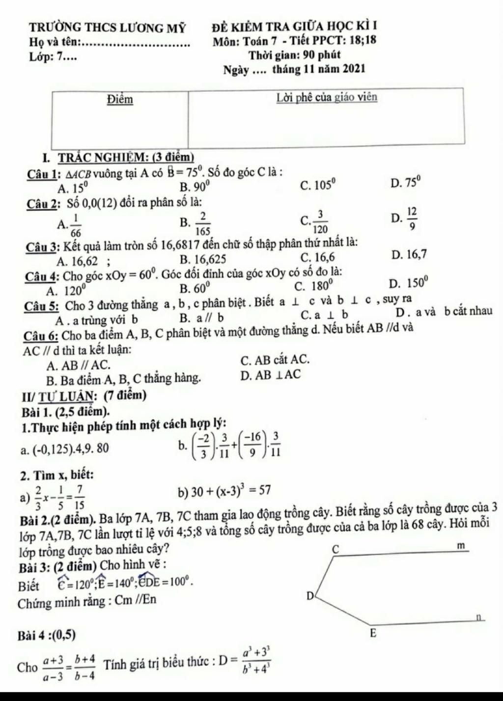 Môn: Toán 7 - Tiết PPCT: 18;18
