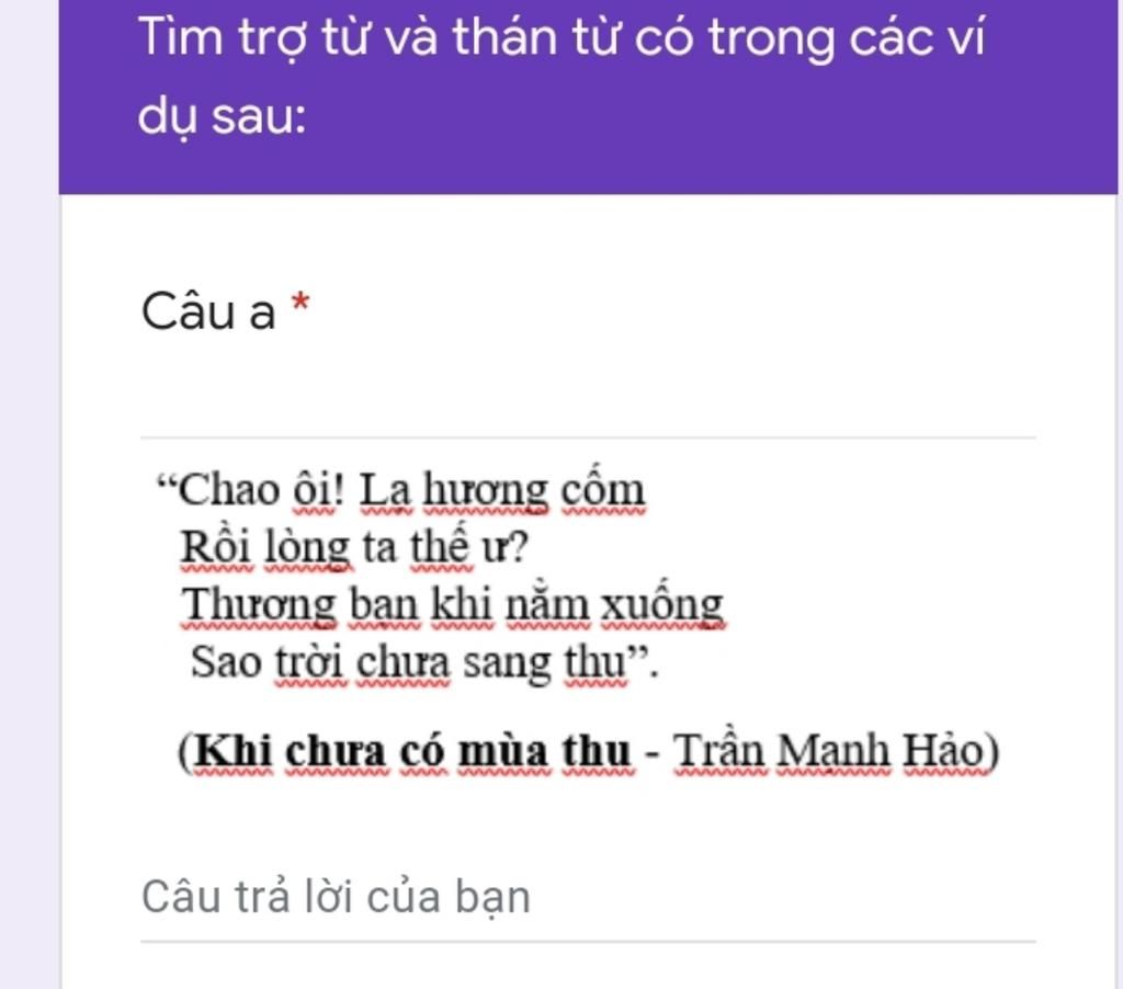 Tìm trợ từ và thán từ có trong các ví