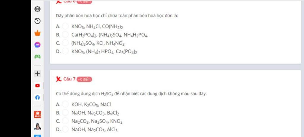 Dãy phân bón hoả học chỉ chứa toàn phân bón hoá học đơn là: