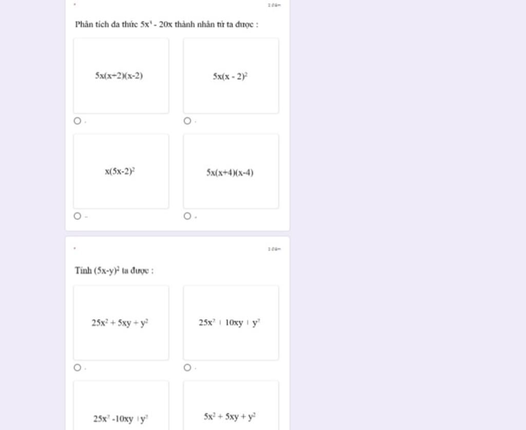 `->` Chọn: `bb(5x.(x+2).(x-2))`