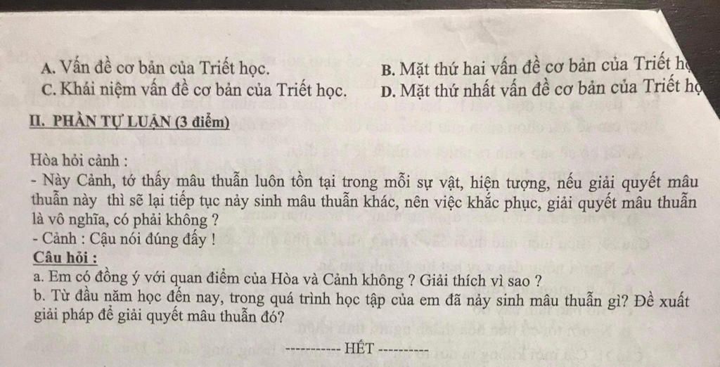 A)- Em không đồng ý với suy nghĩ của 2 bạn Hòa và Cảnh vì nếu mình giải quyết được mâu thuẫn và không tái phạm mâu thuẫn đó thì các mâu thuẫn khác sẽ không xảy ra.