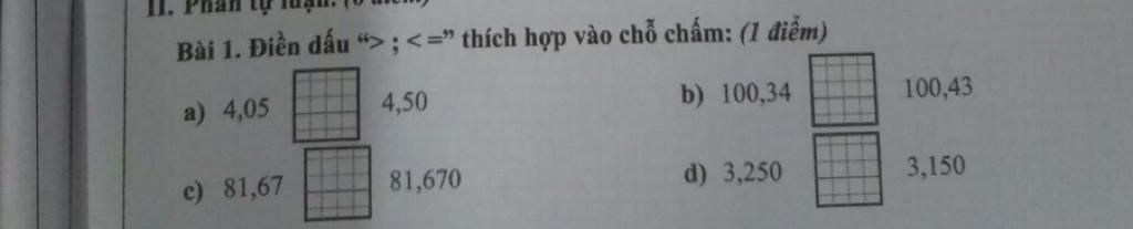 a, 4,05<4,50 b100,34<100,43 c,81,67=81,670 d,3,250>3,150