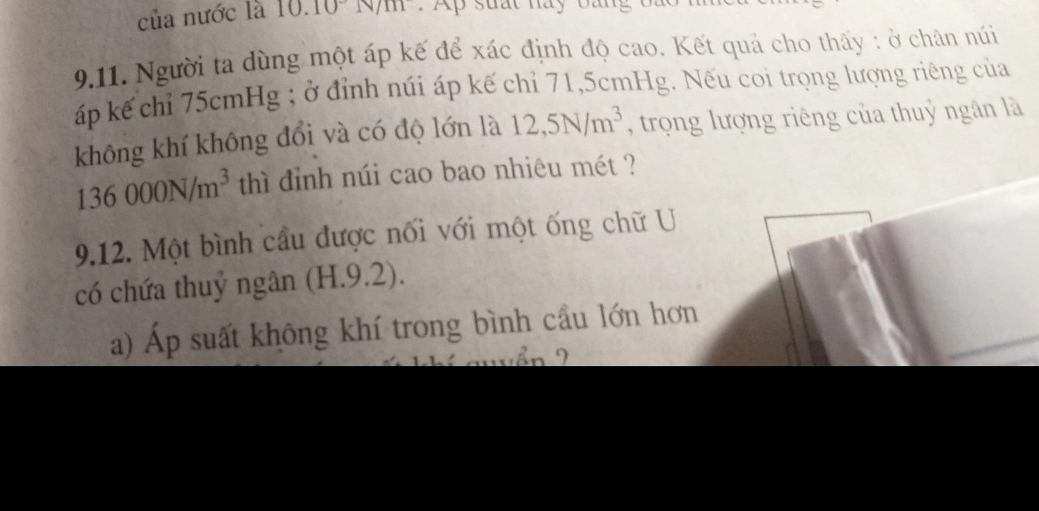 Δp = 75 cmHg – 71,5 cmHg = 3,5 cmHg = 0,035.1360000 = 4760N/m2.